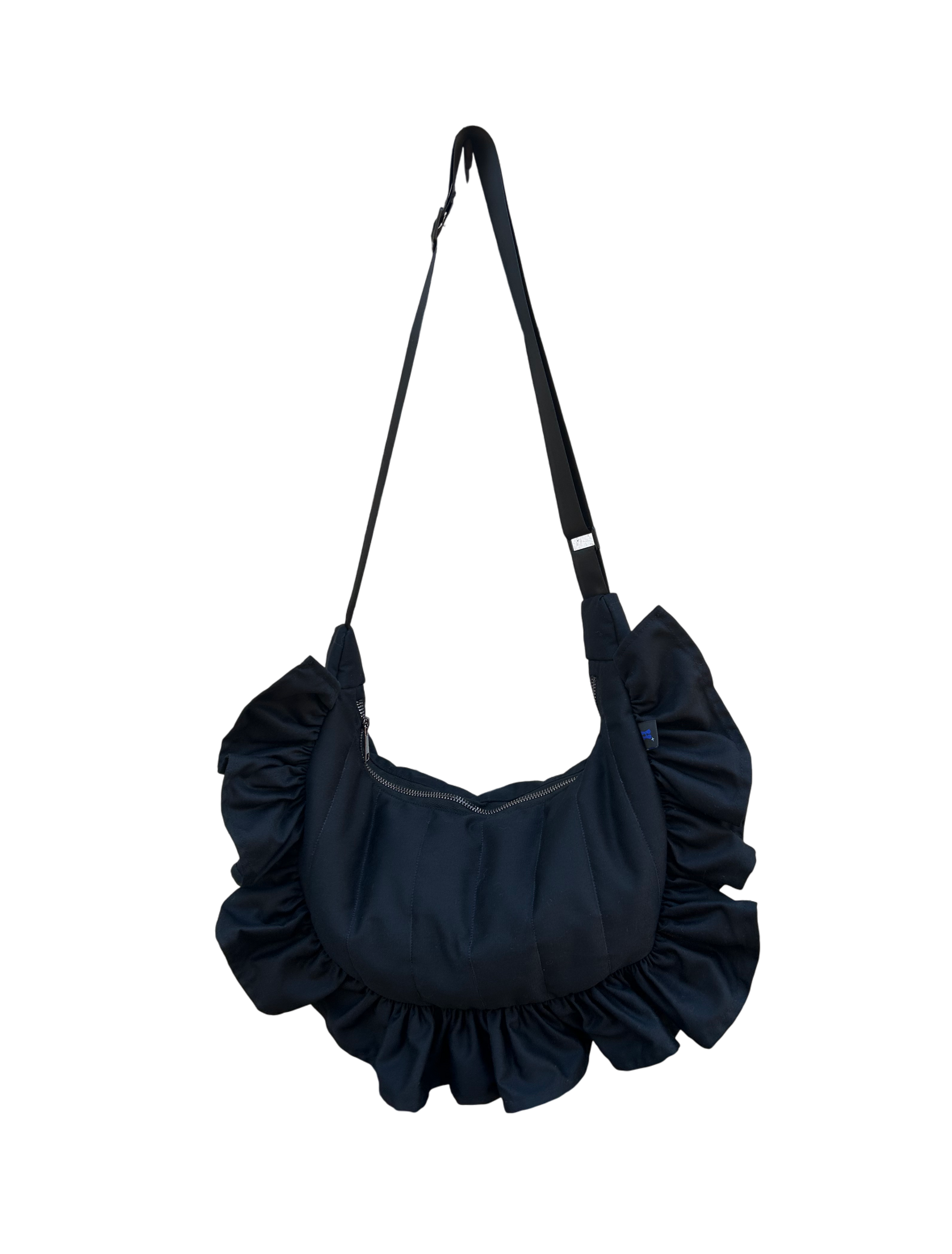 Cartera en gabardina con vuelos.